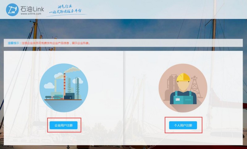 2、选择您要注册的类型,注册个人会员仅可以浏览网站信息,注册企业会员可免费发布企业产品信息,展示企业形象,发布需求。