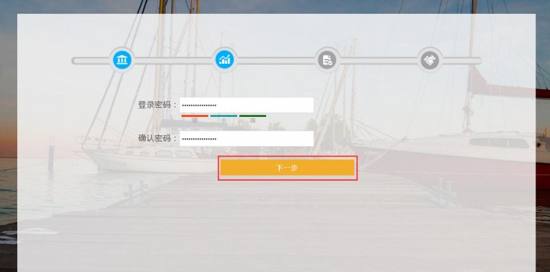 4、填写密码,重复填写密码后,点击下一步。