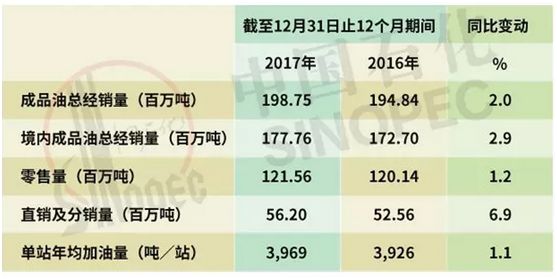 2017年中国石化营销及分营销营运情况