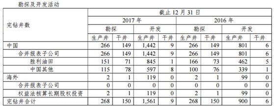 2017勘探及开发生产运营情况