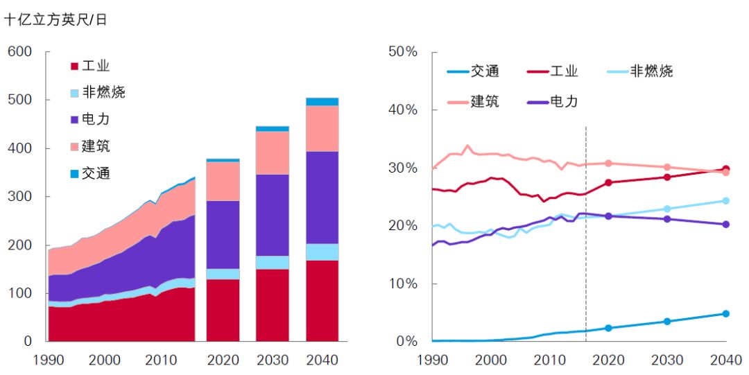《展望》预测,到2040年全球天然气消费量将达到5020亿立方英尺/日,比2016年上涨46.78%。