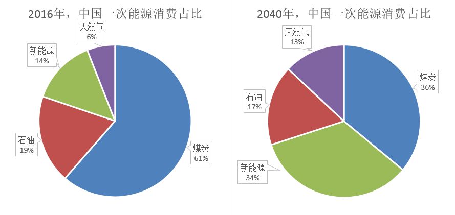 不过值得注意的是,除了新能源,中国的天然气和石油消费量也会持续增长。尤其是天然气,其2040年的消费量将是2016年的3倍。但中国的煤炭消费量会出现大幅下降。