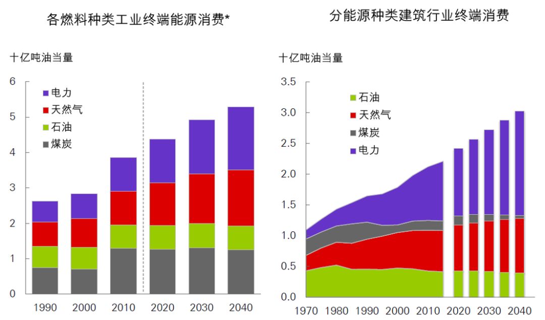 而新能源的崛起,主要是满足人类对电力的新增需求。未来能源需求增长最大的,是工业和建筑领域,而这两大领域对电力的需求都将提高。