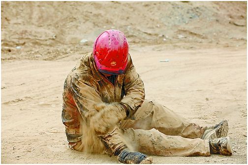 “噗——”顶喷了,油管里的污水飞溅出来,修井人的全身被喷溅成一副地图。在30摄氏度的天气下,污水喷到身上,先是一凉,但随着发粘的原油糊住防护服,身体就像进了包裹严实的蒸笼,全身是汗。